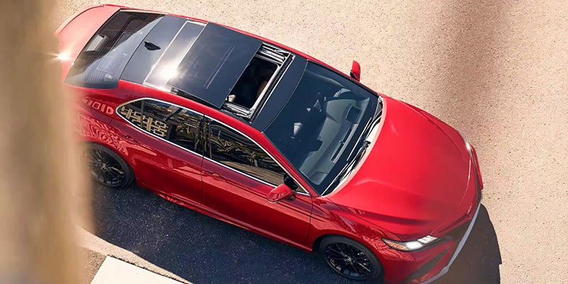 Clean lines, a beautifully sloped roof, and multispoke wheels add to the sophisticated styling of this midsize sedan. If you want a Camry with a mysterious look, choose the SE Nightshade Edition with its blacked-out accents, 19-inch matte bronze-finished alloy wheels, and the striking Reservoir Blue exterior color.