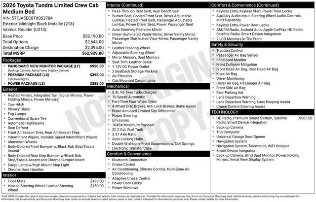 42. EPA-estimated 18 city/24 highway/20 combined mpg rating for 2026 Tundra SR 4x2; EPA-estimated 18 city/23 highway/20 combined mpg rating for 2026 Tundra SR5, Limited, Platinum and 1794 Edition 4x2; EPA-estimated 17 city/22 highway/19 combined mpg rating for 2026 Tundra SR 4x4; EPA-estimated 17 city/22 highway/19 combined mpg rating for 2026 Tundra SR5, Limited, Platinum and 1794 Edition 4x4. EPA-estimated 20 city/24 highway/22 combined mpg rating for 2026 Tundra Limited 4x2 Hybrid, Platinum 4x2 Hybrid and 1794 Edition 4x2 Hybrid; EPA-estimated 19 city/22 highway/20 combined mpg rating for 2026 Tundra Limited 4x4 Hybrid, Platinum 4x4 Hybrid, 1794 Edition 4x4 Hybrid and Capstone 4x4 Hybrid; EPA-estimated 18 city/20 highway/19 combined mpg rating for 2026 Tundra TRD Pro 4x4 Hybrid. Use for comparison purposes only. Your mileage will vary for many reasons, including your vehicle’s condition and how/where you drive. See www.fueleconomy.gov.