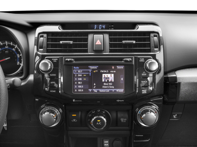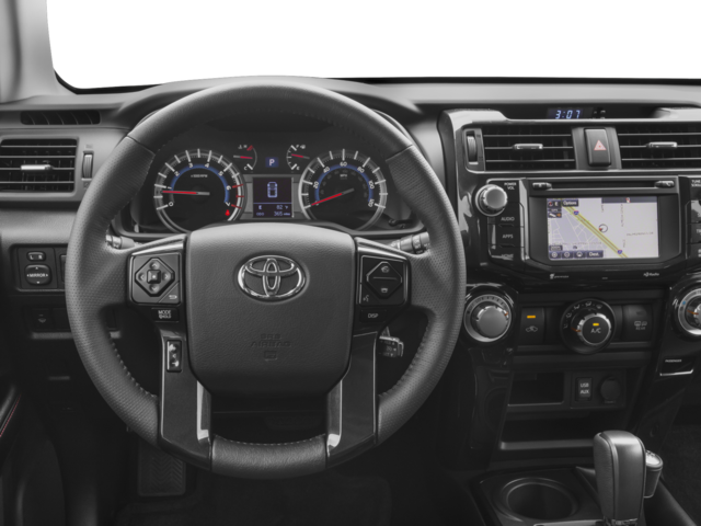 Equipped with 4WD, ABS brakes, Alloy wheels, Body Color Heated Mirrors, Compass, Electronic Stability Control, Heated door mirrors, Heated Front Bucket Seats, Heated front seats, Illuminated entry, Low tire pressure warning, Power moonroof, Power Tilt & Slide Moonroof w/Sunshade, Remote keyless entry, Traction control, 3.727 Axle Ratio, 4-Wheel Disc Brakes, 8 Speakers, Air Conditioning, AM/FM radio: SiriusXM, Anti-whiplash front head restraints, Auto-Dimming Rear-View Mirror, Auto-dimming Rear-View mirror, Black Roof Rails, Brake assist, Bumpers: body-color, CD player, Driver door bin, Driver vanity mirror, Dual front impact airbags, Dual front side impact airbags, Exterior Parking Camera Rear, Front anti-roll bar, Front Bucket Seats, Front Center Armrest, Front fog lights, Front reading lights, Front wheel independent suspension, Garage Door Opener, Garage door transmitter: HomeLink, Knee airbag, Leather Shift Knob, Occupant sensing airbag, Outside temperature display, Overhead airbag, Overhead console, Panic alarm, Passenger door bin, Passenger vanity mirror, Power door mirrors, Power driver seat, Power passenger seat, Power steering, Power windows, Radio: Entune Premium Audio w/Navigation, Rear anti-roll bar, Rear seat center armrest, Rear window defroster, Rear window wiper, Roof rack, Security system, Softex Synthetic Leather Seat Trim, Speed control, Speed-sensing steering, Split folding rear seat, Spoiler, Steering wheel mounted audio controls, Tachometer, Telescoping steering wheel, Tilt steering wheel, Trip computer, Turn signal indicator mirrors, Variably intermittent wipers, Voltmeter, and Wheels: 17 x 7.5 7-Spoke Unique Off-Road Alloy.