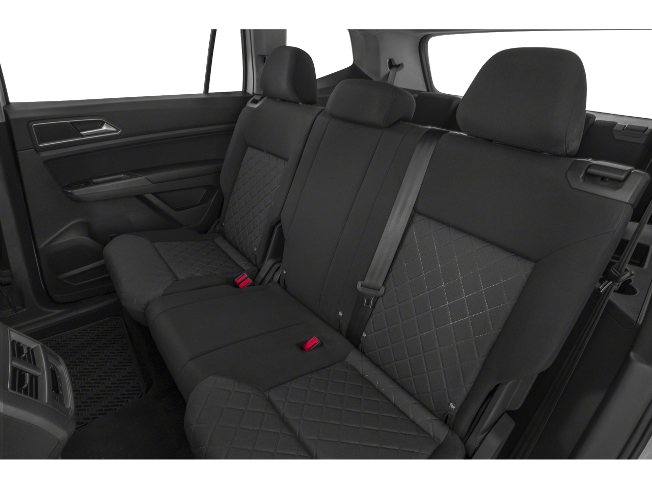 Equipped with 20 Silver Triple 5-Spoke Wheels (Wheels: 20 Silver Triple 5-Spoke Alloy), 18 5-Spoke Wheels, 2nd-Row Dual Captain's Chairs, 3.60 Axle Ratio, 3rd row seats: split-bench, 4-Wheel Disc Brakes, 8 Speakers, ABS brakes, Active Blind Spot Monitor, Air Conditioning, Alloy wheels, AM/FM radio: SiriusXM, Auto-dimming Rear-View mirror, Automatic temperature control, Brake assist, Bumpers: body-color, Compass, Delay-off headlights, Driver door bin, Driver vanity mirror, Dual front impact airbags, Dual front side impact airbags, Electronic Stability Control, Emergency communication system: VW Car-Net services (capabilities require enrollment or subscription), Exterior Parking Camera Rear, Forward collision: FCW w/Autonomous Emergency Braking mitigation, Four wheel independent suspension, Front anti-roll bar, Front Bucket Seats, Front Center Armrest, Front dual zone A/C, Front fog lights, Front reading lights, Garage door transmitter: HomeLink, Heated Comfort Front Bucket Seats, Heated door mirrors, Heated front seats, Heated steering wheel, Heavy Duty Trunk Liner w/VW CarGo Blocks, Illuminated entry, Low tire pressure warning, Memory seat, Navigation System, Occupant sensing airbag, Outside temperature display, Overhead airbag, Overhead console, Panic alarm, Passenger door bin, Passenger vanity mirror, Power door mirrors, Power driver seat, Power Liftgate, Power moonroof, Power passenger seat, Power steering, Power windows, Privacy Cover, Radio data system, Radio: Discover Media 8.0 Touchscreen w/Nav, Rain sensing wipers, Rear air conditioning, Rear anti-roll bar, Rear reading lights, Rear seat center armrest, Rear window defroster, Rear window wiper, Remote CD player, Remote keyless entry, Roadside Assistance Kit, Roof rack: rails only, Rubber Mats Kit - Captain's Chairs, Security system, Security Wheel Locks & Dust Caps (4 each), Speed control, Speed-sensing steering, Split folding rear seat, Spoiler, Standard Suspension, Steering wheel mounted audio controls, Tachometer, Telescoping steering wheel, Tilt steering wheel, Traction control, Trip computer, Turn signal indicator mirrors, V-Tex Leatherette Seating Surfaces, and Variably intermittent wipers.