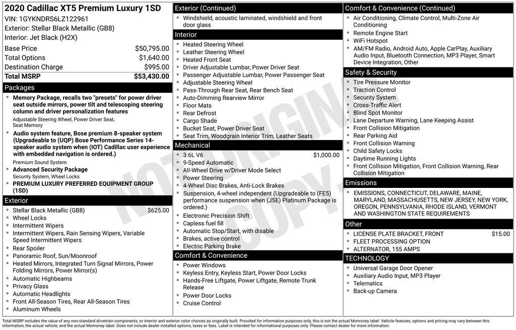 XT5 Premium Luxury, 4D Sport Utility, 3.6L V6 DI VVT, AWD, Stellar Black Metallic, Black Leather, Automatic Dual-Zone Climate Control, Automatic Emergency Braking, Dual Driver Info Center Display Gauge Cluster, Front & Rear Park Assist, HD Rear Vision Camera, Inside Rear-View Auto-Dimming Mirror, Premium Luxury Package 1SD, Teen Driver.