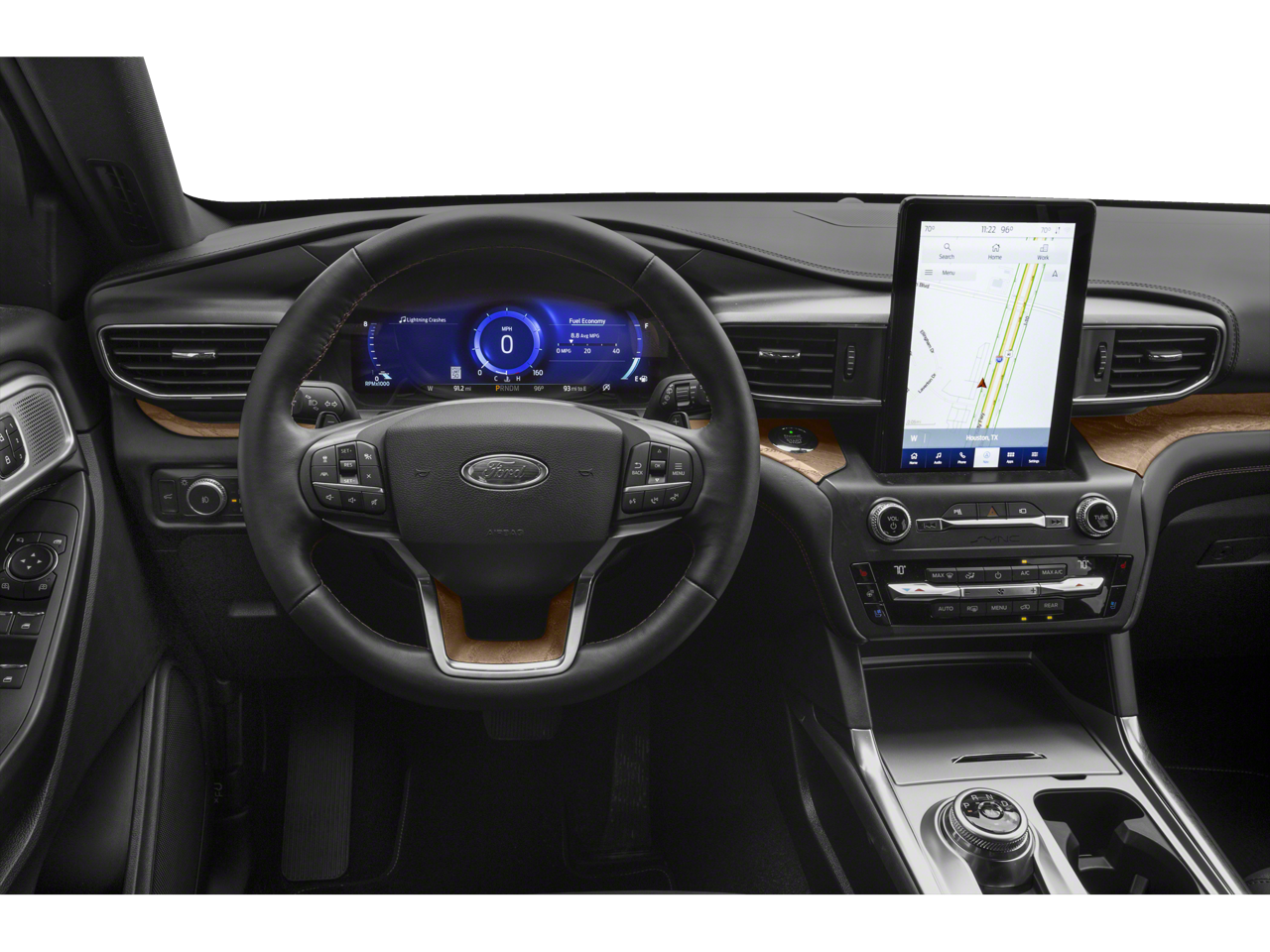 Equipped with Equipment Group 601A, Premium Technology Package (10.1 LCD Capacitive Portrait Touchscreen, 2 Additional Speakers, and Leather Htd/Ventilated Sport Captain's Chairs), 4WD, 12 Speakers, 3.31 Non-Limited-Slip Axle Ratio, 3rd row seats: bench, 4-Wheel Disc Brakes, ABS brakes, Air Conditioning, Alloy wheels, AM/FM radio: SiriusXM, Auto High-beam Headlights, Auto-dimming door mirrors, Auto-dimming Rear-View mirror, Automatic temperature control, Brake assist, Bumpers: body-color, Compass, Delay-off headlights, Driver door bin, Driver vanity mirror, Dual front impact airbags, Dual front side impact airbags, Electronic Stability Control, Emergency communication system: SYNC 3 911 Assist, Exterior Parking Camera Rear, FordPass Connect, Four wheel independent suspension, Front & Second Row Floor Liners (16B), Front anti-roll bar, Front Bucket Seats, Front Center Armrest, Front dual zone A/C, Front fog lights, Front reading lights, Fully automatic headlights, Garage door transmitter: HomeLink, Genuine wood dashboard insert, Heated door mirrors, Heated front seats, Heated rear seats, Heated steering wheel, Illuminated entry, Knee airbag, Leather steering wheel, Low tire pressure warning, Memory seat, Navigation System, Occupant sensing airbag, Outside temperature display, Overhead airbag, Overhead console, Panic alarm, Passenger door bin, Passenger vanity mirror, Power door mirrors, Power driver seat, Power Liftgate, Power passenger seat, Power steering, Power windows, Radio data system, Radio: B&O Sound System by Bang & Olufsen, Rain sensing wipers, Rear air conditioning, Rear anti-roll bar, Rear reading lights, Rear window defroster, Rear window wiper, Remote keyless entry, Roof rack: rails only, Security system, SelectShift Capability w/Paddle Shifters, Speed control, Speed-sensing steering, Speed-Sensitive Wipers, Split folding rear seat, Spoiler, Steering wheel memory, Steering wheel mounted audio controls, SYNC 3 Communications & Entertainment System, SYNC 3/Apple CarPlay/Android Auto, Tachometer, Telescoping steering wheel, Tilt steering wheel, Traction control, Trip computer, Turn signal indicator mirrors, Twin Panel Moonroof, Variably intermittent wipers, Ventilated front seats, Voice-Activated Touchscreen Navigation System, and Wheels: 21 Bright Machined-Face Aluminum.