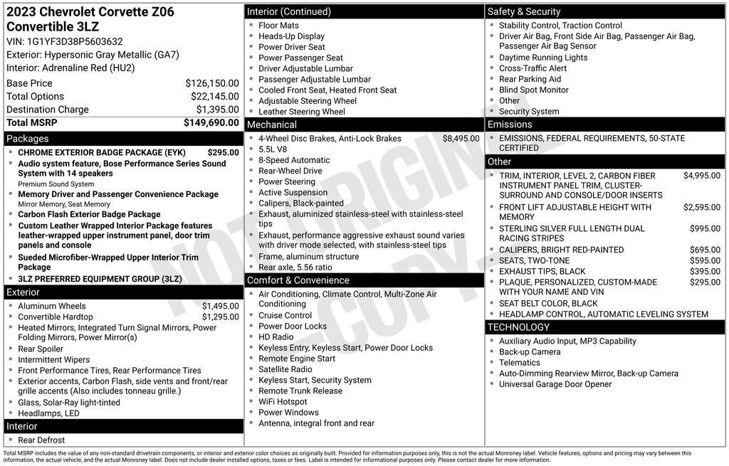 - Features a factory-installed interior plaque that includes your name, the Vehicle Identification Number (VIN) and the Corvette crossed flags logo