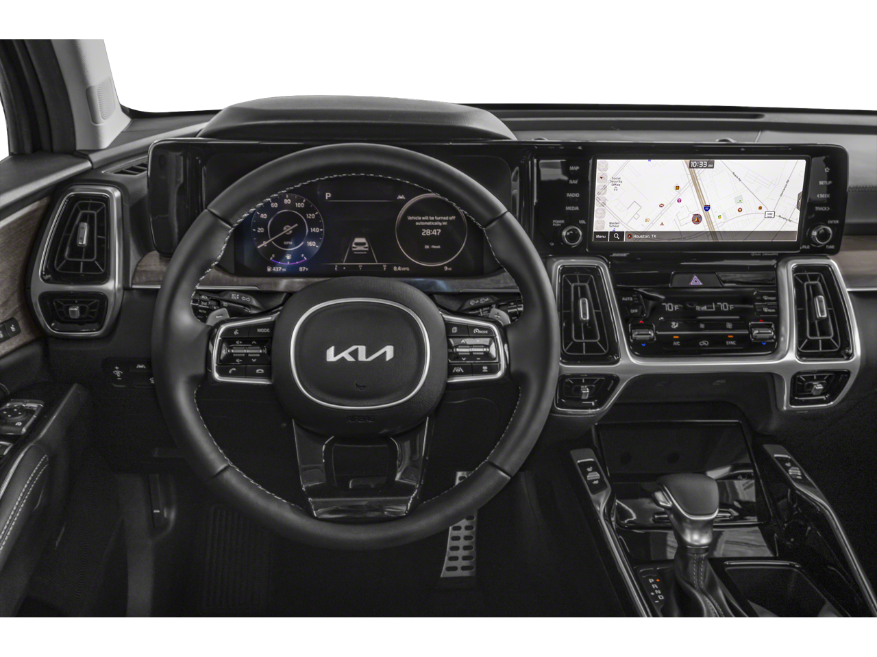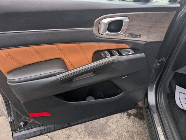 12 Speakers, 3.316 Axle Ratio, 3rd row seats: split-bench, 4-Wheel Disc Brakes, ABS brakes, Air Conditioning, Alloy wheels, AM/FM radio: SiriusXM, Apple CarPlay & Android Auto, Auto High-beam Headlights, Auto-dimming Rear-View mirror, Automatic temperature control, Brake assist, Bumpers: body-color, Carpet Floor Mats, Delay-off headlights, Driver door bin, Driver vanity mirror, Dual front impact airbags, Dual front side impact airbags, Electronic Stability Control, Emergency communication system, Four wheel independent suspension, Front anti-roll bar, Front Bucket Seats, Front Center Armrest, Front dual zone A/C, Front fog lights, Front reading lights, Fully automatic headlights, Garage door transmitter: HomeLink, Heated & Ventilated Front Bucket Seats, Heated door mirrors, Heated front seats, Heated rear seats, Heated steering wheel, Illuminated entry, Interior Lighting Kit, Knee airbag, Leather steering wheel, Low tire pressure warning, Memory seat, Mudguards, Navigation System, Occupant sensing airbag, Outside temperature display, Overhead airbag, Overhead console, Panic alarm, Passenger door bin, Passenger vanity mirror, Perforated Genuine Leather Seat Trim, Power door mirrors, Power driver seat, Power Liftgate, Power moonroof, Power passenger seat, Power steering, Power windows, Radio data system, Radio: AM/FM Bose Premium Audio System, Rain sensing wipers, Rear air conditioning, Rear anti-roll bar, Rear reading lights, Rear window defroster, Rear window wiper, Remote keyless entry, Roof rack: rails only, Security system, Smart Key w/ Push Button and Remote Start, Speed control, Speed-sensing steering, Split folding rear seat, Spoiler, Steering wheel mounted audio controls, Tachometer, Telescoping steering wheel, Tilt steering wheel, Traction control, Trip computer, Turn signal indicator mirrors, Variably intermittent wipers, Ventilated front seats, Wheels: 8.5J x 20 Matte Gray Alloy, X-Line Rust Interior Color Package. 2023 Kia Sorento CARFAX One-Owner. Clean CARFAX.