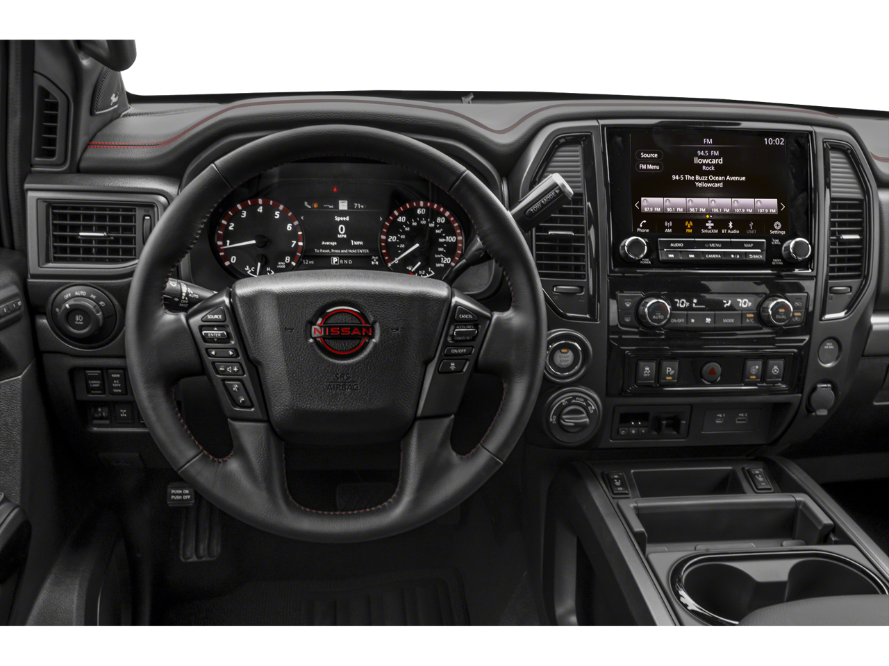 - Radio: NissanConnect w/Navigation -inc: 9" touchscreen display, 6 speakers, wireless Apple CarPlay, Android Auto, SiriusXM radio, SiriusXM Traffic, SiriusXM Travel Link w/weather, fuel prices, movie listings, stock info, sports and parking, TomTom weather, Nissan door to door navigation w/3D building graphics and satellite imagery, connected navigation features including online POI search, over-the-air map updates and online premium traffic information, 2 illuminated USB (1 type A, 1 type C) connection ports for iPod interface, Bluetooth® hands-free phone system, streaming audio via Bluetooth®, hands-free text messaging assistant, Nissan voice recognition for navigation and audio and Siri Eyes Free