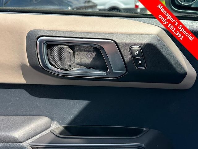 Bronco Wildtrak, 4D Sport Utility, 2.7L EcoBoost V6, 10-Speed Automatic, 4WD, Cactus, Black Leather, 10 Speakers w/Subwoofer, 360-Degree Camera, Adaptive Cruise Control, Additional Sound Deadening, Equipment Group 354A High/Lux Package, Evasive Steering Assist, Front Parking Sensors, Heated Steering Wheel, Information on Demand Panel, Navigation system: Connected Navigation, Radio: B&O Sound System by Bang & Olufsen, Sideview Mirrors, Universal Garage Door Opener, Wireless Charging Pad, 4-Wheel Disc Brakes, 4.7 Axle Ratio, 7 Speakers, ABS brakes, Air Conditioning, Alloy wheels, AM/FM radio: SiriusXM with 360L, AM/FM Stereo, Auto High-beam Headlights, Auto-dimming Rear-View mirror, Automatic temperature control, Brake assist, Brush Guard, Carbonized Gray Molded-In-Color Hard Top, Compass, Connected Navigation, Delay-off headlights, Driver door bin, Driver vanity mirror, Dual front impact airbags, Dual front side impact airbags, Electronic Stability Control, Emergency communication system: 911 Assist, Exterior Parking Camera Rear, Front & Rear Floor Liners w/o Carpet Floor Mats, Front anti-roll bar, Front Bucket Seats, Front Center Armrest, Front dual zone A/C, Front fog lights, Front reading lights, Front Row Top Panels Storage Bag, Front wheel independent suspension, Fully automatic headlights, Hard Top Sound Deadening Headliner, Heated door mirrors, Heated front seats, Heated Leather-Trimmed/Vinyl Bucket Seats, Illuminated entry, Integrated roll-over protection, Leather Shift Knob, Low tire pressure warning, Occupant sensing airbag, Outside temperature display, Overhead airbag, Overhead console, Panic alarm, Passenger door bin, Passenger vanity mirror, Power door mirrors, Power steering, Power windows, Radio data system, Rear-Window Defroster & Washer, Remote keyless entry, Removable Hoop Step, Security system, SiriusXM Radio w/360L, Speed control, Split folding rear seat, Steering wheel mounted audio controls, SYNC 4, Tachometer, Telescoping steering wheel, Tilt steering wheel, Traction control, Trip computer, Variably intermittent wipers, Voltmeter, Wheels: 17 Black High Gloss-Painted Aluminum, Bronco Wildtrak, 4D Sport Utility, 2.7L EcoBoost V6, 10-Speed Automatic, 4WD, Cactus, Black Leather, 10 Speakers w/Subwoofer, 360-Degree Camera, Adaptive Cruise Control, Additional Sound Deadening, Equipment Group 354A High/Lux Package, Evasive Steering Assist, Front Parking Sensors, Heated Steering Wheel, Information on Demand Panel, Navigation system: Connected Navigation, Radio: B&O Sound System by Bang & Olufsen, Sideview Mirrors, Universal Garage Door Opener, Wireless Charging Pad.