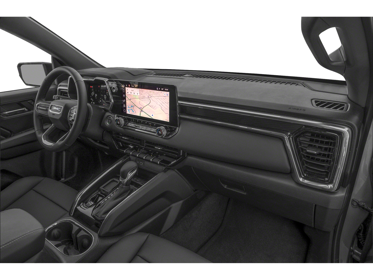 Equipped with Canyon Safety Plus Package (Rear Cross Traffic Braking and Ultrasonic Rear Park Assist), Convenience Package (120-Volt Bed Mounted Power Outlet, 2 Rear USB Ports in Center Console (Charge-Only), Driver & Front Passenger Illuminated Visors, Dual-Zone Automatic Air Conditioning, EZ-Lift & Lower Tailgate, Front LED Fog Lamps, Heated Power-Adjustable Outside Mirrors, Inside Rear-View Auto-Dimming Mirror, Interior Overhead Courtesy Light w/Dual Reading Lamp, Manual Rear-Sliding Window, MultiStow Tailgate, Rear of Console 120-Volt Power Outlet, Rear-Window Electric Defogger, Remote Vehicle Starter System, Tailgate Keyed Cylinder Lock, and Tilt & Telescopic Manual Steering Column), Preferred Equipment Group 2VL (Automatic Emergency Braking, Canyon Pro Safety, Following Distance Indicator, Forward Collision Alert, Front Pedestrian & Bicyclist Braking, IntelliBeam Automatic High Beam On/Off, and Lane Keep Assist w/Lane Departure Warning), Trailering Package (Integrated Trailer Brake Controller), 1 Rear USB Ports in Center Console (Charge-Only), 2 1st Row USB Charge/Data Ports, 220 Amps Alternator, 3.42 Rear Axle Ratio, 4-Way Manual Front Passenger Seat Adjuster, 4-Wheel Disc Brakes, 6 Speakers, 6-Speaker Audio System Feature, 6-Way Manual Driver Seat Adjuster, ABS brakes, Air Conditioning, Alloy wheels, AM/FM radio, Apple CarPlay/Android Auto, Auto High-beam Headlights, Automatic Locking Rear Differential, Automatic Stop/Start, Blind Zone Steering Assist, Brake assist, Bumpers: body-color, Cloth Seat Trim, Compass, Delay-off headlights, Driver door bin, Driver vanity mirror, Dual front impact airbags, Dual front side impact airbags, Electronic Stability Control, Front anti-roll bar, Front Bucket Seats, Front Center Armrest, Front Passenger Seatback Map Pocket, Front wheel independent suspension, Illuminated entry, Low tire pressure warning, Navigation System, Occupant sensing airbag, Outside temperature display, Overhead airbag, Overhead console, Panic alarm, Passenger door bin, Passenger vanity mirror, Power door mirrors, Power steering, Power windows, Radio data system, Radio: 11.3 Diagonal Premium GMC Infotainment Sys, Rear reading lights, Rear step bumper, Remote keyless entry, Security system, SiriusXM w/360L, Speed control, Speed-sensing steering, Split folding rear seat, Steering wheel mounted audio controls, Stop/Start System Disable Button Engine Control, Tachometer, Tilt steering wheel, Traction control, Trip computer, Variably intermittent wipers, Wheels: 18 x 8.5 Dark Gray Painted Aluminum, and Wireless Apple CarPlay/Wireless Android Auto.