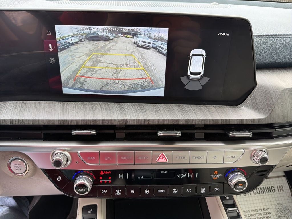 Equipped with 3.648 Axle Ratio, 3rd row seats: split-bench, 4-Wheel Disc Brakes, 6 Speakers, ABS brakes, Air Conditioning, Alloy wheels, AM/FM radio: SiriusXM, Apple CarPlay & Android Auto, Auto High-beam Headlights, Auto-dimming Rear-View mirror, Automatic temperature control, Brake assist, Bumpers: body-color, Carpet Floor Mats, Compass, Delay-off headlights, Driver door bin, Driver vanity mirror, Dual front impact airbags, Dual front side impact airbags, Electronic Stability Control, Emergency communication system: 911 Connect, Exterior Parking Camera Rear, Four wheel independent suspension, Front anti-roll bar, Front Bucket Seats, Front Center Armrest, Front dual zone A/C, Front reading lights, Fully automatic headlights, Heated & Ventilated Front Bucket Seats, Heated door mirrors, Heated front seats, Heated steering wheel, Illuminated entry, Knee airbag, Leather Seat Trim, Leather Shift Knob, Leather steering wheel, Low tire pressure warning, Navigation System, Occupant sensing airbag, Outside temperature display, Overhead airbag, Overhead console, Panic alarm, Passenger door bin, Passenger vanity mirror, Power door mirrors, Power driver seat, Power Liftgate, Power moonroof, Power passenger seat, Power steering, Power windows, Radio data system, Radio: AM/FM Display Audio System, Rear air conditioning, Rear anti-roll bar, Rear audio controls, Rear reading lights, Rear side impact airbag, Rear window defroster, Rear window wiper, Reclining 3rd row seat, Remote keyless entry, Roof rack: rails only, Security system, Smart Key w/ Push Button and Remote Start, Speed control, Speed-sensing steering, Split folding rear seat, Spoiler, Steering wheel mounted audio controls, Tachometer, Telescoping steering wheel, Tilt steering wheel, Traction control, Trip computer, Turn signal indicator mirrors, Variably intermittent wipers, and Ventilated front seats.