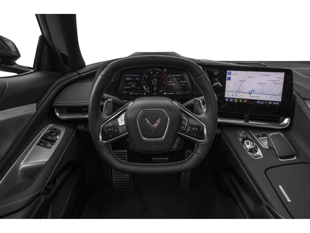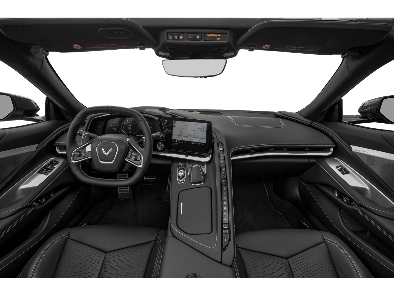 Carbon Flash Metallic Painted Outside Mirrors (Carbon Flash Metallic-Painted Outside Mirrors), Memory Driver & Passenger Convenience Package, Preferred Equipment Group 2LT (2 Cargo Nets, Bose Performance Series Sound System w/14 Speakers, Driver Power Bolster Seat Adjuster, Electrical Theft Deterrent System, HD Front & Rear Vision Cameras, Head-Up Display, Heated & Vented Driver & Passenger Seats, Heated Steering Wheel, Passenger Power Bolster Seat Adjuster, Performance Data & Video Recorder, Power Driver Lumbar Control Seat Adjuster, Power Passenger Lumbar Control Seat Adjuster, Power-Adjustable Outside Heated Mirrors, Rear Cross Traffic Alert, Side Blind Zone Alert, Universal Home Remote, Vehicle Inclination Theft Deterrent Sensor, Vehicle Interior Movement Theft Deterrent Sensor, and Wireless Charging for Devices), Stealth Interior Trim Package, 14 Speakers, 4-Wheel Disc Brakes, 8-Way Power Driver Seat Adjuster, 8-Way Power Passenger Seat Adjuster, ABS brakes, Air Conditioning, All-Weather Floor Liners w/Jake Logo (LPO), Alloy wheels, AM/FM radio: SiriusXM, Auto High-beam Headlights, Auto-dimming door mirrors, Auto-dimming Rear-View mirror, Automatic temperature control, Black Exhaust Tips, Black Ground Effects (LPO), Body-Color Removable Roof Panel, Brake assist, Bumpers: body-color, Carbon Flash Met-Painted High Wing Spoiler (LPO), Compass, Dark Stealth Front Crossed Flags Emblem (LPO), Delay-off headlights, Driver door bin, Driver vanity mirror, Dual front impact airbags, Dual front side impact airbags, Electronic Stability Control, Emergency communication system: OnStar and Chevrolet connected services capable, Exterior Parking Camera Rear, Four wheel independent suspension, Front anti-roll bar, Front Bucket Seats, Front Center Armrest, Front dual zone A/C, Front reading lights, Fully automatic headlights, Garage door transmitter, GT1 Bucket Seats, GT2 Bucket Seats, Heated door mirrors, Heated front seats, Heated steering wheel, Illuminated entry, Leather Shift Knob, Leather steering wheel, Low tire pressure warning, Memory seat, Mulan Lthr Seating Surfaces w/Perforated Inserts, Navigation System, Occupant sensing airbag, Outside temperature display, Overhead console, Panic alarm, Passenger door bin, Passenger vanity mirror, Performance Exhaust w/Stainless-Steel Tips, Power door mirrors, Power driver seat, Power passenger seat, Power steering, Power windows, Premium audio system: Chevrolet Infotainment 3 Premium, Radio data system, Radio: Chevrolet Infotainment 3 Premium System, Rear anti-roll bar, Rear window defroster, Remote keyless entry, Security system, Speed control, Speed-sensing steering, Sport steering wheel, Steering wheel memory, Steering wheel mounted audio controls, Tachometer, Telescoping steering wheel, Tilt steering wheel, Traction control, Trip computer, Turn signal indicator mirrors, Variably intermittent wipers, Ventilated front seats, Voltmeter, Wheels: 19 x 8.5 Fr/20 x 11 Rr Bright Silver, and Wheels: 19 x 8.5 Fr/20 x 11 Rr Gloss Black.