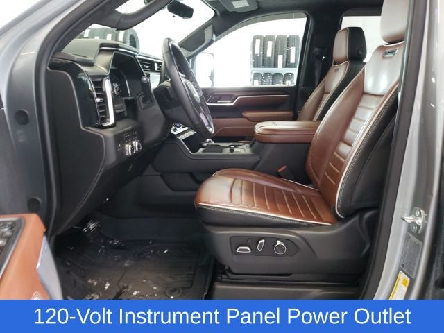 Sierra 2500HD Denali Ultimate, 4D Crew Cab, Duramax 6.6L V8 Turbodiesel, 10-Speed Automatic, 4WD, Sterling Metallic, Alpine Umber Leather, 120-Volt Bed Mounted Power Outlet, 120-Volt Instrument Panel Power Outlet, 2 Charge-Only Rear USB Ports, 2 Charge/Data USB Ports Inside Center Console, 2 USB Ports, 2-Speed Active Transfer Case, 220-Amp Alternator, Bed View Camera w/2 Trailer Camera Provisions, Bose Premium Series 12-Speaker System, Deep-Tinted Glass, Electric Rear-Window Defogger, Floor-Mounted Center Console, Front Rain-Sensing Wipers, Gooseneck/5th Wheel Prep Package, HD Surround Vision, Heated 2nd Row Outboard Seats, Heated Driver & Front Outboard Passenger Seats, Hill Descent Control, Inside Rearview Auto-Dimming Rear Camera Mirror, Keyless Open & Start, LED Cargo Area Lighting, LED Smoked Amber Roof Marker Lamps, Manual Tilt-Wheel/Telescoping Steering Column, Multicolor 15 Diagonal Head-Up Display, OnStar Services Capable, Power Front Passenger Windows w/Express Up/Down, Power Sliding Rear Window w/Defogger, Power Sunroof, Preferred Equipment Group 5SB, Push Button Start, Rear Cross Traffic Alert, Rear Wheelhouse Liners, Remote Vehicle Starter System, Safety Alert Seat, Signature Denali Ultimate Grille in Vadar Chrome, SiriusXM w/360L Trial Subscription, Snow Plow Prep/Camper Package, Spray-On Pickup Bedliner w/GMC Logo, Steering Wheel Audio Controls, Technology Package, Trailer Cam Provisions & Trailer Viewing Software, Trailer Side Blind Zone Alert, Trailer Tire Pressure Monitor Sensors, Ultrasonic Front & Rear Park Assist, Unauthorized Entry Theft-Deterrent System, Universal Home Remote, Ventilated Driver & Front Passenger Seats, Wireless Charging, Wireless Phone Projection, X31 Off-Road Package, 12 Speakers, 16-Way Power Driver Seat Adjuster w/Lumbar, 16-Way Power Passenger Seat Adjuster w/Lumbar, 3.42 Axle Ratio, 4-Wheel Disc Brakes, ABS brakes, Air Conditioning, All-Weather Floor Liners (LPO), Alloy wheels, AM/FM radio: SiriusXM with 360L, Apple CarPlay/Android Auto, Auto High-beam Headlights, Auto-dimming door mirrors, Auto-dimming Rear-View mirror, Automatic Emergency Braking, Automatic temperature control, Block heater, Brake assist, Buckle to Drive, Bumpers: body-color, Compass, Delay-off headlights, Driver door bin, Driver Memory, Driver vanity mirror, Dual front impact airbags, Dual front side impact airbags, Dual Heavy-Duty 70 Amp Battery, Electronic Stability Control, Emergency communication system: OnStar, Following Distance Indicator, Forward Collision Alert, Front anti-roll bar, Front Bucket Seats, Front Center Armrest, Front dual zone A/C, Front fog lights, Front Pedestrian Braking, Front reading lights, Front wheel independent suspension, Full Grain Leather Seat Trim, Fully automatic headlights, Garage door transmitter, Genuine wood dashboard insert, Genuine wood door panel insert, Heads-Up Display, Heated door mirrors, Heated front seats, Heated rear seats, Heated steering wheel, Hitch Guidance w/Hitch View, Illuminated entry, In-Vehicle Trailering System App, IntelliBeam Automatic High Beam On/Off, Lane Departure Warning System, Leather steering wheel, Low tire pressure warning, Memory seat, Occupant sensing airbag, Off-Road Suspension, Outside temperature display, Overhead airbag, Overhead console, Panic alarm, Passenger door bin, Passenger vanity mirror, Pickup Box, Power door mirrors, Power driver seat, Power moonroof, Power passenger seat, Power steering, Power windows, Radio: AM/FM w/Premium GMC Infotainment System, Rain sensing wipers, Rear reading lights, Rear seat center armrest, Rear step bumper, Rear window defroster, Remote keyless entry, Security system, Speed control, Speed-sensing steering, Split folding rear seat, Steering