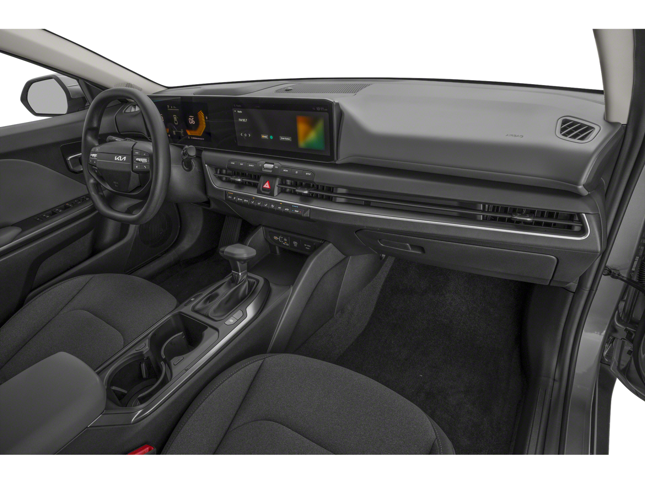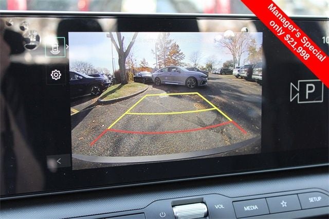 Equipped with Kia Certified Pre-Owned Certified, 4-Wheel Disc Brakes, 6 Speakers, ABS brakes, Air Conditioning, Alloy wheels, AM/FM radio: SiriusXM, Apple CarPlay & Android Auto, Auto High-beam Headlights, Brake assist, Bumpers: body-color, Cloth Seat Trim, Delay-off headlights, Driver door bin, Driver vanity mirror, Dual front impact airbags, Dual front side impact airbags, Electronic Stability Control, Front anti-roll bar, Front Bucket Seats, Front Center Armrest, Front reading lights, Front wheel independent suspension, Fully automatic headlights, Heated door mirrors, Illuminated entry, Low tire pressure warning, Occupant sensing airbag, Outside temperature display, Overhead airbag, Overhead console, Panic alarm, Passenger door bin, Passenger vanity mirror, Power door mirrors, Power steering, Power windows, Radio data system, Radio: 12.3 Touchscreen Audio Display, Rear side impact airbag, Rear window defroster, Remote keyless entry, Security system, Speed control, Split folding rear seat, Steering wheel mounted audio controls, Tachometer, Telescoping steering wheel, Tilt steering wheel, Traction control, Trip computer, Variably intermittent wipers, and Wheels: 16 x 6.5J Dark Gray Alloy.